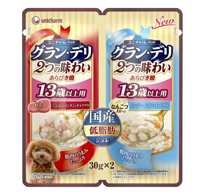 ユニ・チャーム グラン・デリ 2つの味わいパウチジュレ13歳以上用ビーフ&軟骨30g×2 (犬用 マナーウェア 紙おむつ オムツ)