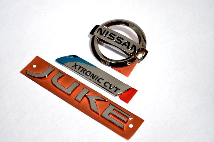Color Emblem『車種』YF15 ジューク『メッキ色』ブラック『SET内容』フロントニッサンマーク/リアニッサンマーク/JUKEロゴ/XTRONIC CVTマーク※単品でのご注文も可能です純正エンブレムに自社にてメッキ加工を施しておりますので繊細な調整(薄め、濃いめ)の指定も可能です。